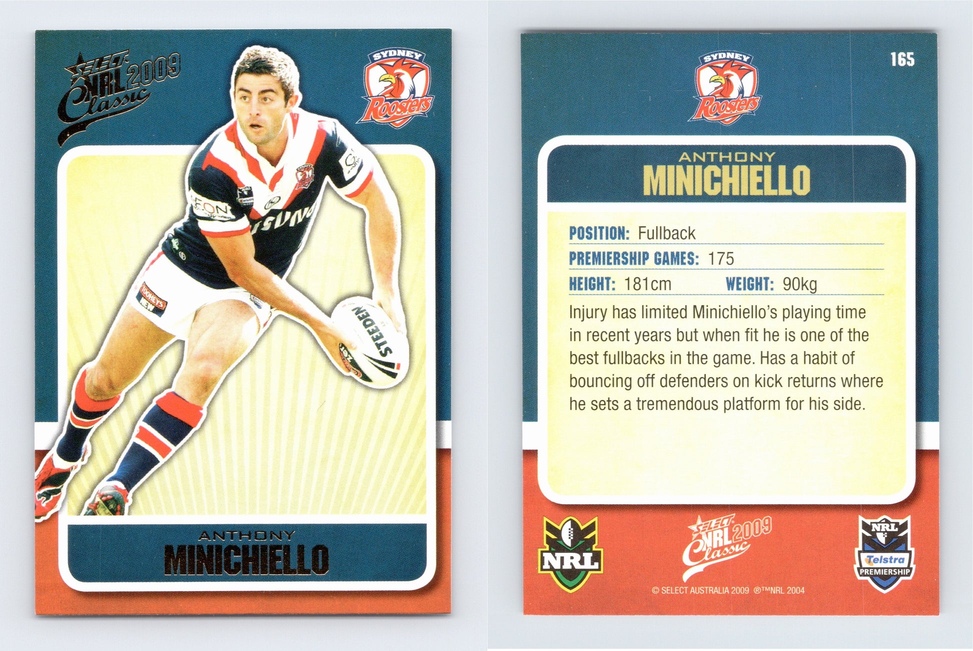 #165 ANTHONY MINICHIELLO 2009 Select NRL Classic in near mint to mint condition!