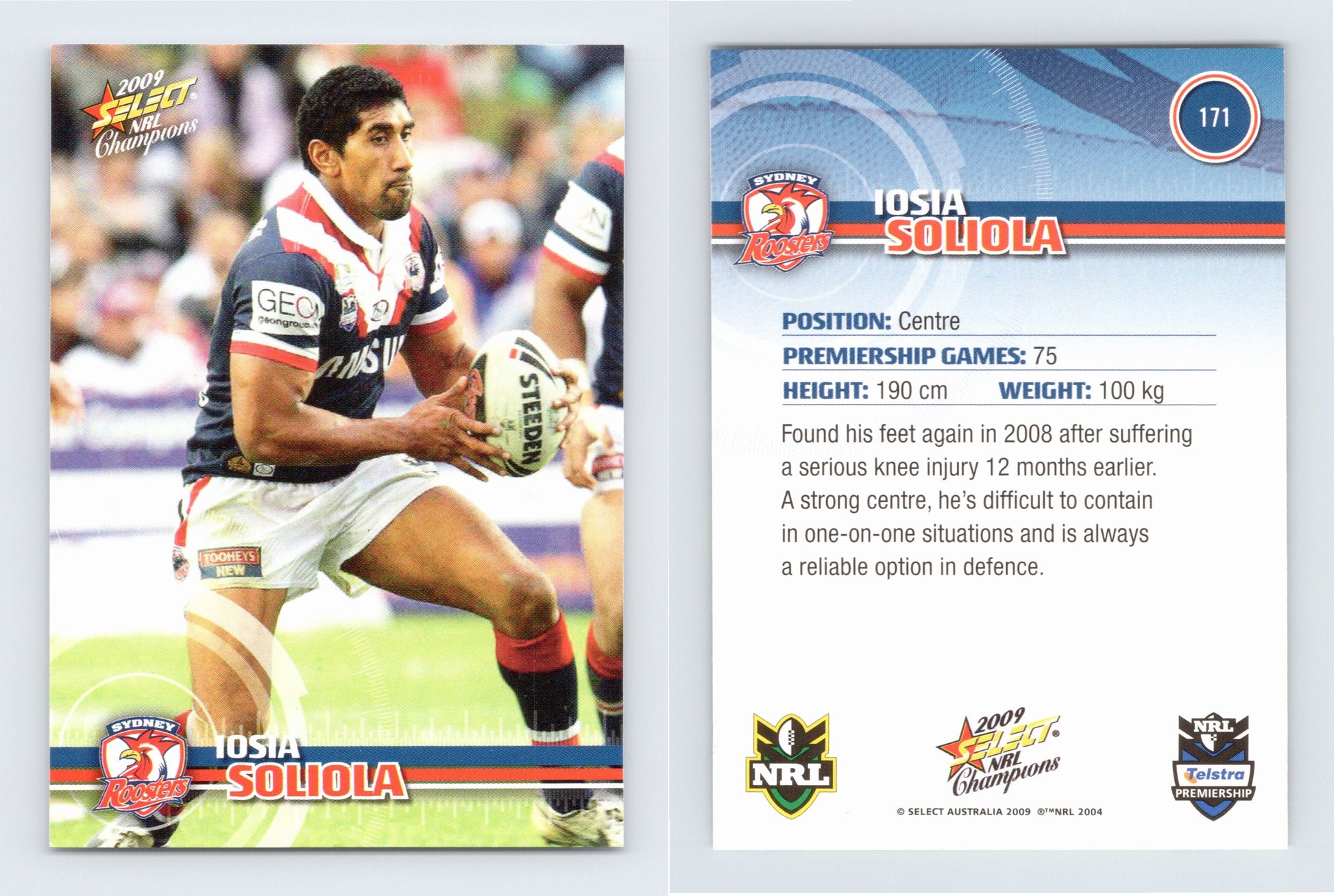 #171 IOSIA SOLIOLA 2009 Select NRL Champions in near mint to mint condition!